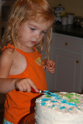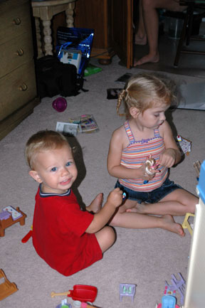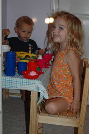 Adeline and Anderson playing in her room with play food. They love to "make dinner."